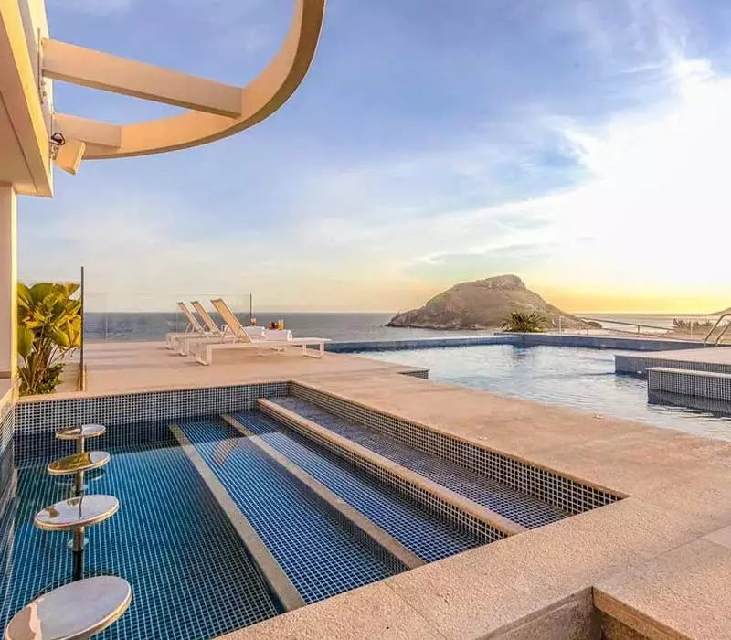 O hotel possui atividades para todas as idades, atendimento personalizado, sauna, hidromassagem, spa, moderna academia e a famosa piscina de borda infinita, para aproveitar o maravilhoso pôr-do-sol acompanhado sempre de uma playlist preparada especialmente para a ocasião. Além disso, existem excelentes restaurantes, shopping centers e muitas atrações naturais próximos ao hotel.