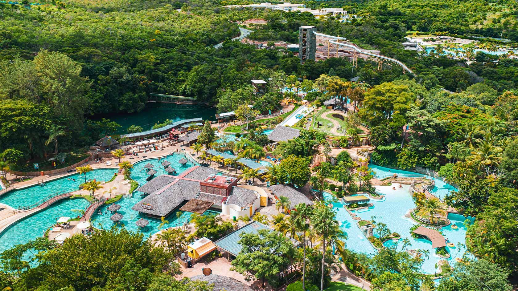Sim, as piscinas e atrações utilizam águas termais naturais, com temperaturas que variam entre 36°C e 40°C.