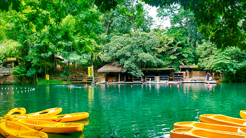 Imagine um lago amplo de águas quentes e cristalinas, rodeado pela grandiosa natureza do Cerrado e espelhando o céu azul. Essa paisagem, que parece tirada de um cartão postal, é, na verdade, o que você encontra no Lago de Águas Quentes do Rio Quente Resorts. O lago tem uma temperatura média de 37,5 ºC. E, com suas águas incrivelmente transparentes, é possível observar toda a flora aquática e peixes de até 2 m de comprimento. Uma experiência única e imperdível!